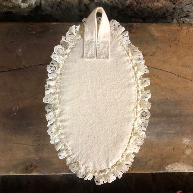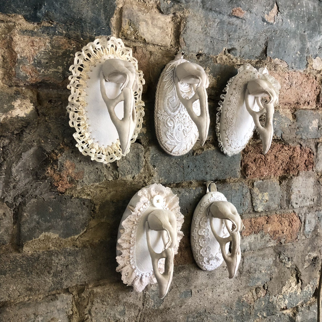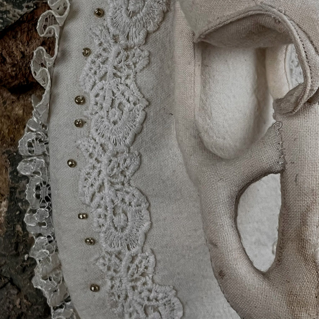 This sewn bone is made from natural coloured 100% cotton calico. Because of the nature of these soft sculptures, some items may require a little bit of gentle manipulation after posting. There is a fabric hanging loop for installation. I have added light detail/depth of colour/aging in acrylic paint. The haberdashery is a mixture of old, new, and end of line. The stuffing is made from recycled PET- bottles or factory waste, depending on which is available at the time, making this item ethical, vegan and sustainable.