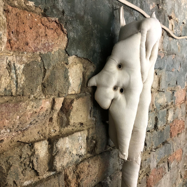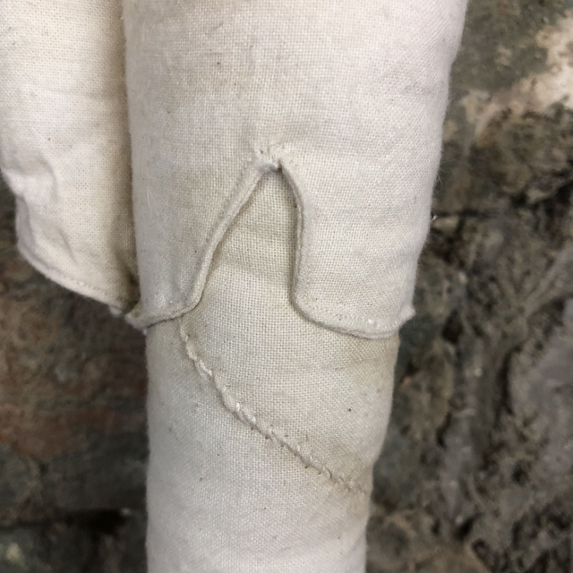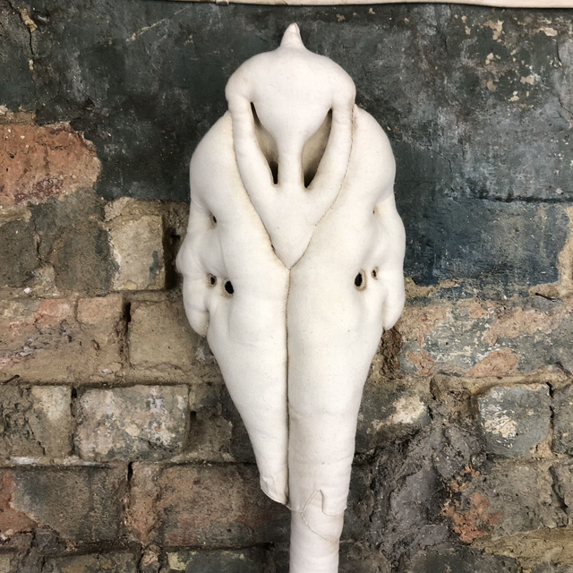 This sewn bone is made from natural coloured 100% cotton calico. Because of the nature of these soft sculptures, this skull may require a little bit of gentle manipulation to make her hang straight, when you receive the narwhal, the tusk will be coiled up for postage, simply straighten it out. I have added light detail/depth of colour/aging in acrylic paint. The stuffing is made from recycled PET- bottles or factory waste, depending on which is available at the time, making this item ethical, vegan and sustainable.